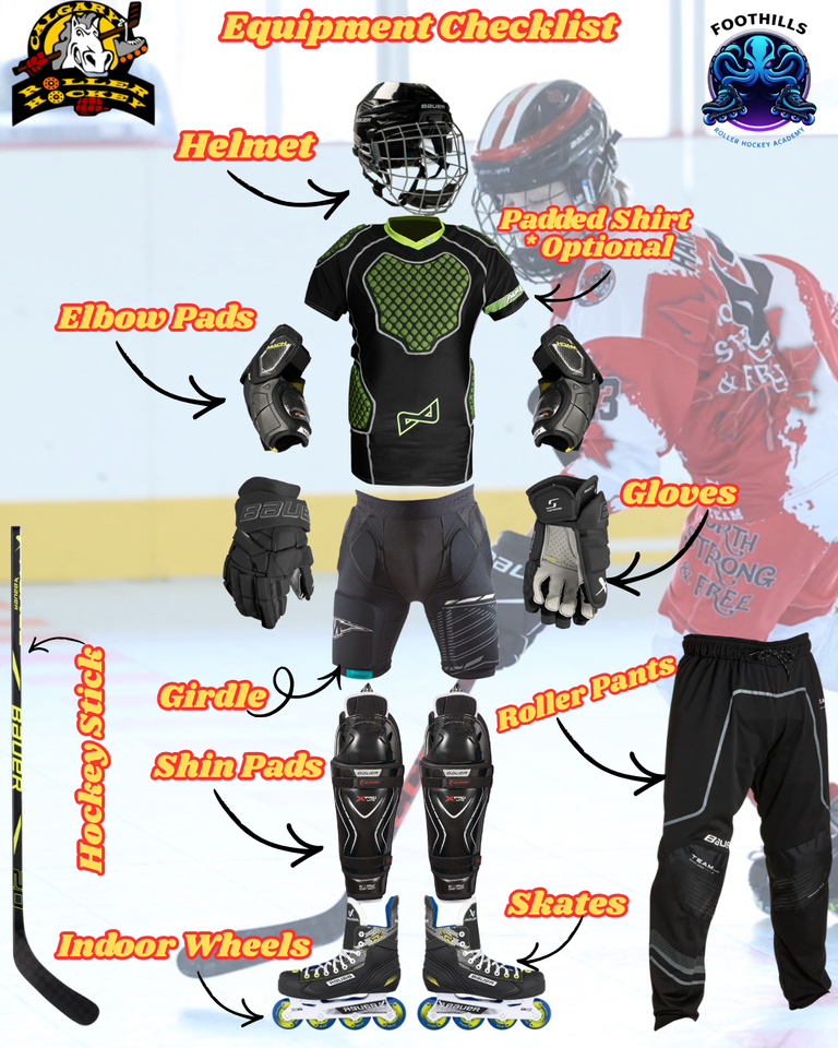 For all other equipment—including skates, gloves, elbow pads, shin pads, and sticks—please click the link below to visit Professional Skate in Calgary, our proud supporter of roller hockey in Calgary and Okotoks.